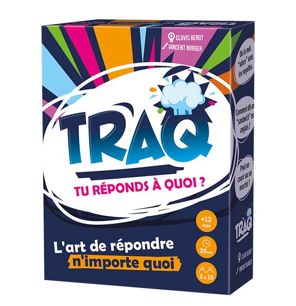 A TRAQ: Tu Réponds À Quoi egy nagyszerű társasjáték, 3 - 10 játékos részére, az átlagos játékidő rövid, csak 20 perc. A társast, 12 éves kortól ajánljuk kipróbálni. A játékmenet erősen épít a memória mechanizmusra.
