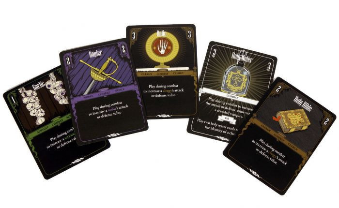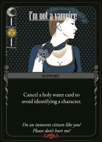 Three characters in the castle are vampires. A human investigator is trying to determine which three of nine characters he encounters are, in fact, monsters hiding in human form so that he can eliminate them. The head vampire, on the other hand, must bluff cleverly, present confusing clues, and trick the humans into attacking innocent citizens. By doing this, the vampire can kill the most important characters in the city or conquer the castle.