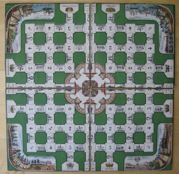 Players represent travelers, departing from one of eight European cities, on a race to be the first to reach Peking (or Beijing).
