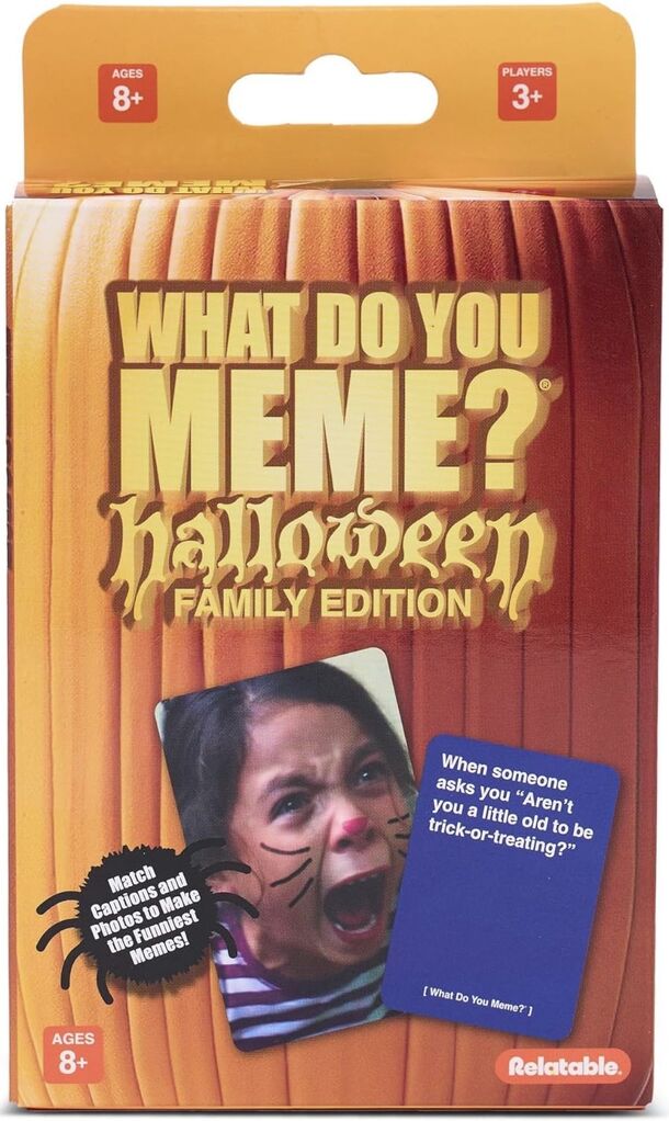 Get ready for a scary good time with What Do You Meme? Halloween Family Edition. Made for spooky season fun, this game is a must-have for your Halloween celebrations. Whether you're playing it on its own or in combination with What Do You Meme? Family Edition—the family-friendly version of our original. TikTok famous viral meme game—it’s sure to deliver loads of spine-chilling laughs.
