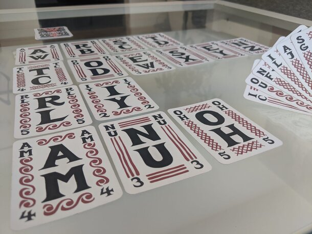 As each card can be used for 2 different letters, there is a skill in deciding what fragments to build.