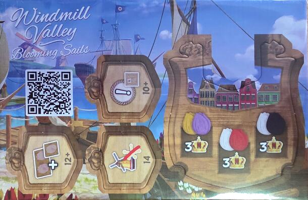 A Windmill Valley: Blooming Sails Promo egy közepesen összetett kiegészítő a Windmill Valley társasjátékhoz, 1 - 4 játékos részére, az átlagos játékidő 45 - 90 perc. A társast, a bonyolultsága miatt, csak 14 éves kortól ajánljuk kipróbálni. A játékmenet erősen épít a játék végi bónuszok, a market, a multi-use cards, az útépítés és a pontról pontra mozgás...