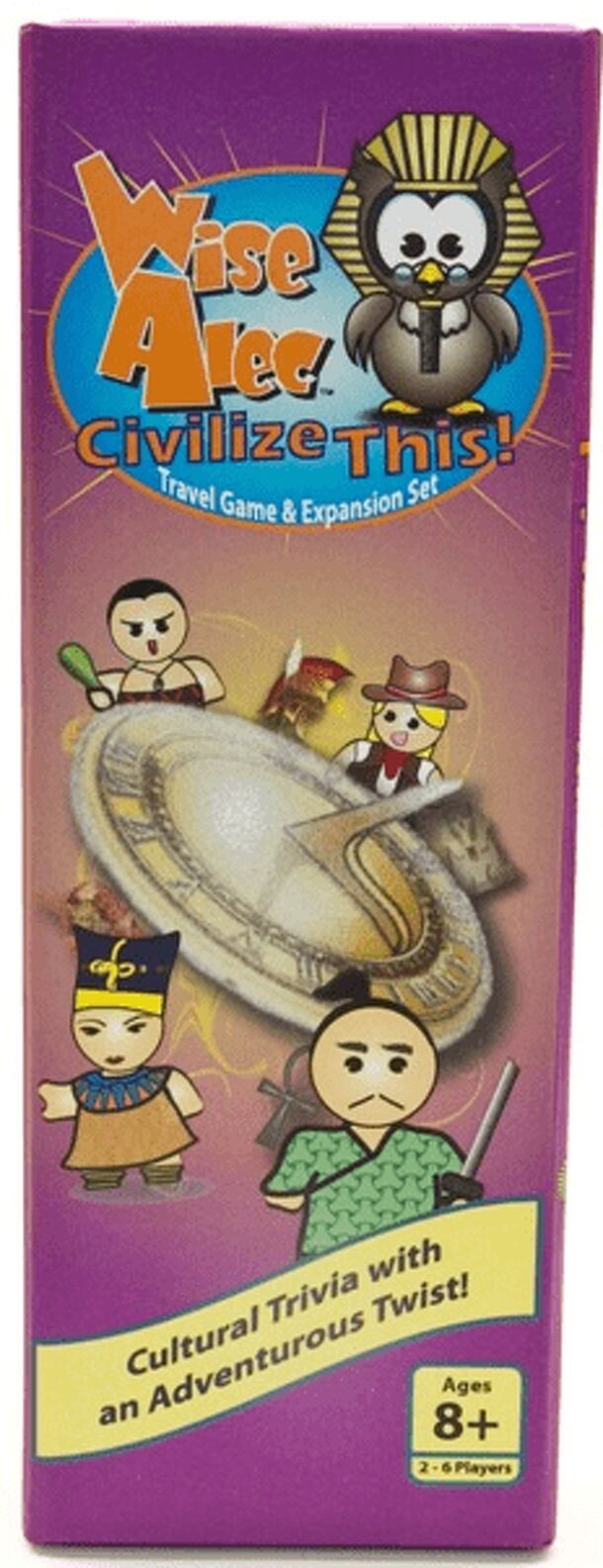 Hello Time Travelers! Explore the world’s cultures across time with the trivia game based on the award-winning Wise Alec Family Trivia Game. There are 300 questions to test your knowledge of Ancient, Medieval, and Modern cultures. Two levels of questions on each card let everyone from young scholars to history buffs play together. Plus, Wise Alec cards will have you doing tongue twisters, brain teasers, and fun exercises!
