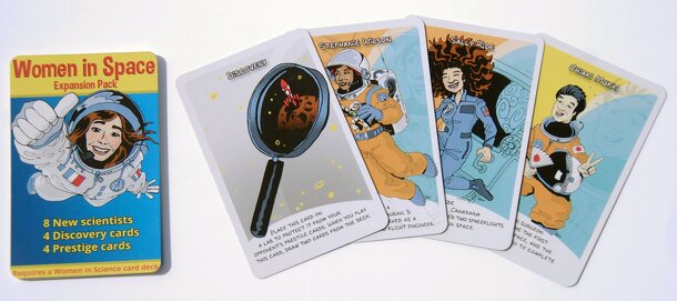 A Women in Space egy nagyon könnyen tanulható kiegészítő a Women in Science társasjátékhoz, 2 - 4 játékos részére, az átlagos játékidő rövid, csak 10 - 20 perc. A társast, a könnyebb tanulhatósága miatt, akár már 7 éves kortól ajánljuk kipróbálni. A játékmenet erősen épít a kollekció gyűjtés és a pakli tervezés mechanizmusokra.