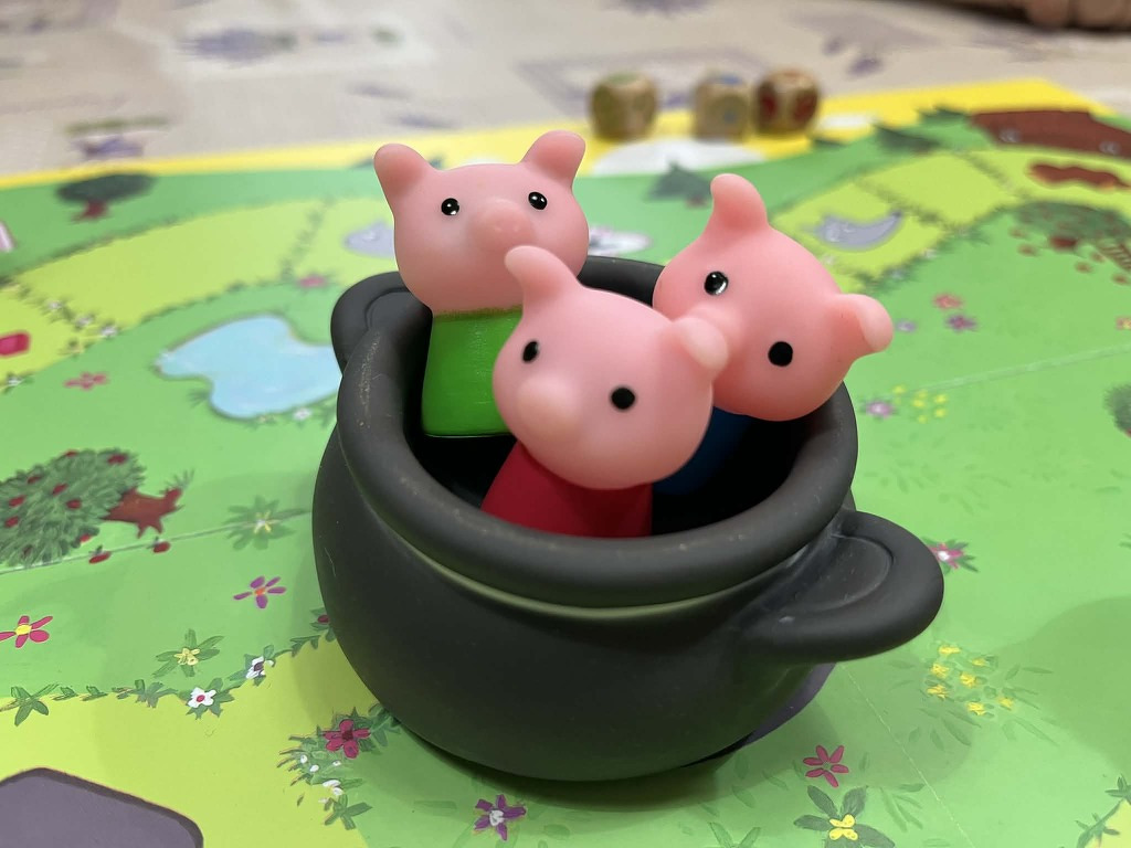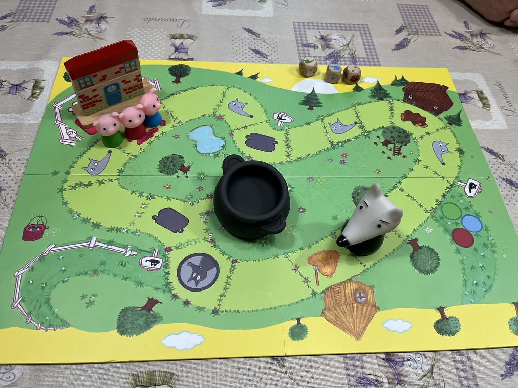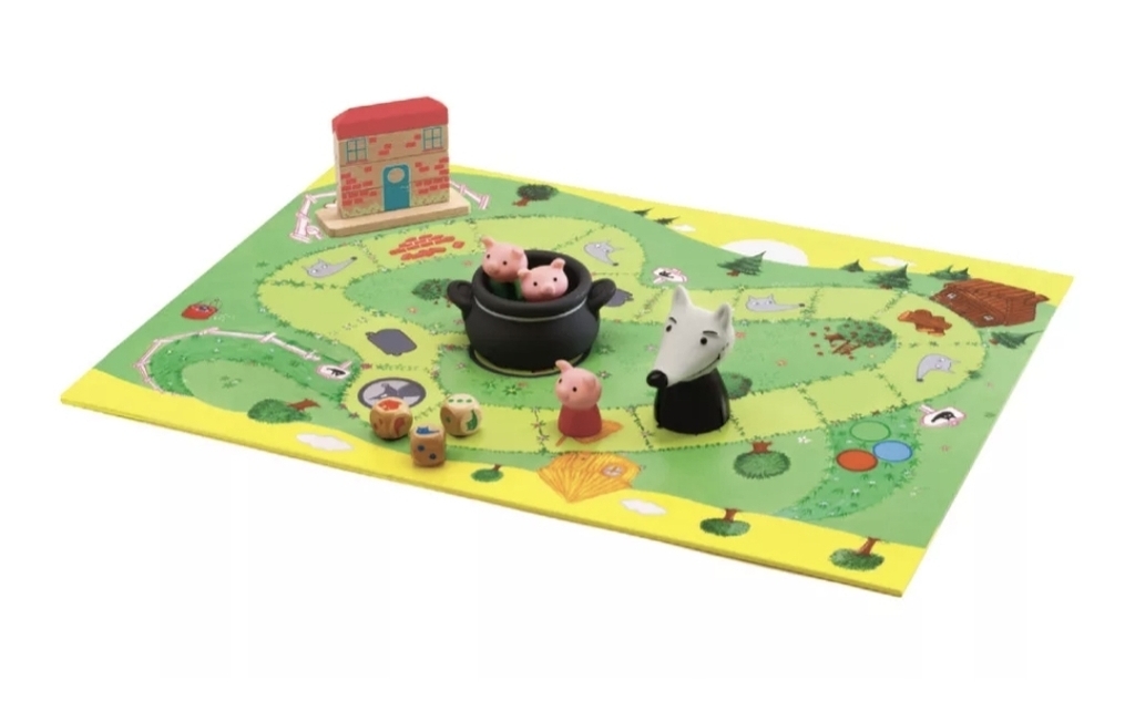 Djeco Woolfy - A három kismalac A Djeco Woolfy - A három kismalac kooperatív társasjáték a közkedvelt Három kismalac mese társasjáték változata. Itt nem csak elképzeljük, hanem meg is személyesítjük a kismalacokat, és a farkast, ettől lesz nagyon izgalmas ez a játék. Ahhoz, hogy mind a hárman megmeneküljenek a gonosz farkastól, szorosan együtt kell működniük, akár csak a ház felépítésében. A játékosok akkor nyernek, ha sikerült felépíteni a téglaházat, és mindhárom kismalac biztonságban be is jutott, a farkas pedig akkor nyer, ha mindhárom kismalac a fazékban köt ki. Amit a Djeco Woolfy - A három kismalac társasjátékról még tudni érdemes: A doboz tartalma: játéktábla 3 kismalac figura 1 farkas figura 3 dobókocka 1 fazék 1 téglaházikó (4 darabban) Játékosszám: 2 - 4 játékos részére Játékidő: ~ 20 perc A Djeco Woolfy - A három kismalac társasjátékot 5 éves kortól ajánljuk Jobbnál-jobb társasjátékok kicsiknek !