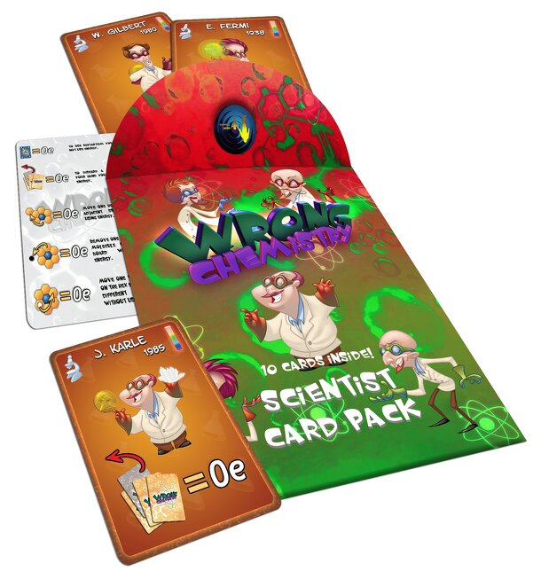 Wrong Chemistry: Scientist Card Pack includes eleven cards, ten of them represent new mad scientists for use in Wrong Chemistry and the final card stands as a reference card that explains how to use the scientists. At the beginning of the game, each player chooses one of the available scientists, each of whom has a unique power. The player can use this...