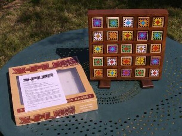 There is a 2-sided tray and 25 wooden cubes what have faces with colorful geometric patterns. The goal is to get five identical cubes in a row (line, column or diagonal). A cube...