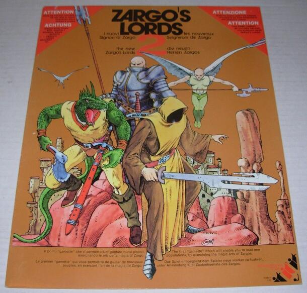 Zargo's Lords 2 is an expansion for Zargo's Lords: Magic Duels for World Power. It adds 2 new people (the Aracnids people and its web-laying giant spiders, retiarii and poisoned arrows-firers, and the Amazons , a people of shapeshifters and light infantry able to cross enemy zones of control unnoticed), more cities for each people, Magic rules and new rules that make the game shorter and more fierce, forcing players to the offensive even at the beginning of the game.