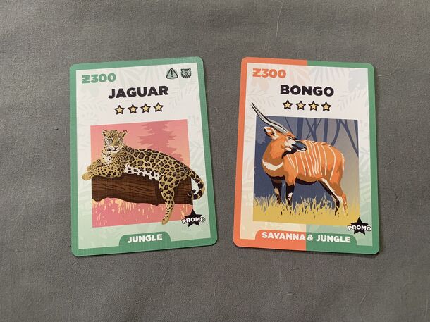 A Zoo King: Jaguar & Bongo Promo cards egy könnyen tanulható kiegészítő a Zoo King társasjátékhoz, 2 - 4 játékos részére, az átlagos játékidő rövid, csak 30 perc. A társast, a könnyebb tanulhatósága ellenére, csak 10 éves kortól ajánljuk kipróbálni. A játékmenet erősen épít a kollekció gyűjtés, a kártya húzás, a merj és nyerj, a vedd el és az események...